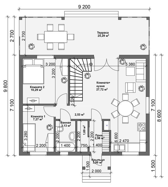 Двухэтажный каркасный дом 7 на 10,5 с террасой, проект, цена, строительство под ключ