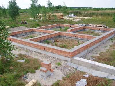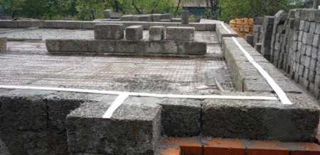 Арболит является самым легким конструкционным материалом, поэтому для возведения стен не требуется устройство монолитного пола из железобетона, достаточно будет ограничиться ленточным фундаментом выполненным своими руками, ширина которого должна быть равна толщине стен. В качестве материала для устройства опорной конструкции дома должен быть использован железобетон или кирпич, способные выдержать вес здания в три этажа, так как большая этажность для монолитных конструкций из арболита не допускается. Впоследствии между ленточными фундаментами надлежит выполнить устройство полов, которые также могут быть выполнены из арболита.