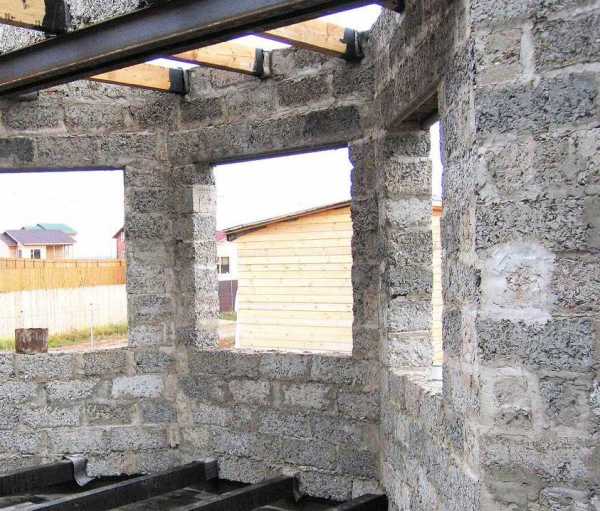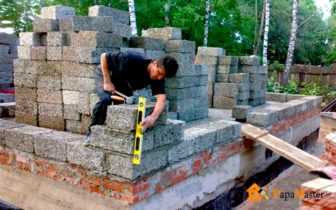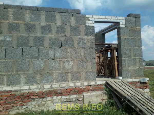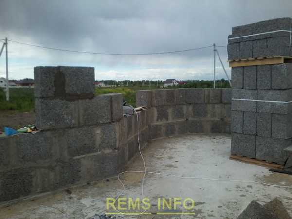 Как только фундамент для будущего строения будет готов, можно переходить к сооружению цокольного этажа. Он может быть выполнен из красного кирпича, который обладает высокой теплоёмкостью, или из бетона. После этого переходят к кладке арболитовых блоков. Её осуществляют при помощи раствора цемента марки 10. Швы такой кладки делаются толщиной в 1-1,5 см.Из арболита также изготавливают перемычки для дверных и оконных проёмов. Обязательным будет проводить армирование таких перемычек. При строительстве дома следует учесть тот факт, что арболит схватывается довольно медленно и именно поэтому на усадку дома потребуется больше времени, чем кирпичному строению.