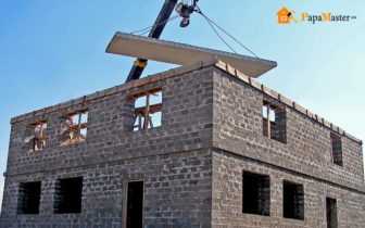 - После достижения отметки следующего этажа надлежит выполнить устройство пола, залив его своими руками арболитом поверх специально подготовленной опалубки или уложив стандартные железобетонные плиты перекрытия. После того, как пол будет обустроен, все операции повторяются до достижения проектной высоты здания.