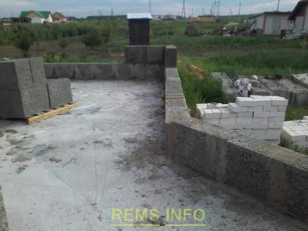 - Изоляция между фундаментом и первым рядом кирпича или блоков. Как правило используют рубероид.