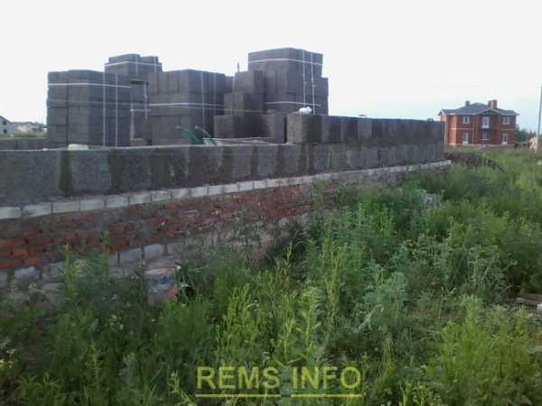 Сделав дренажную систему из песка и щебенки,я начал переходить к следующему этапу строительства (фундамент). Образование у меня экономическое и мне надо было экономить,а особенно то чего постоянно не хватает. И вот тогда мне пришлось внести первые корректировки. Я нашел б/у материал (плиты, кирпич, фундаментные блоки и подушки). Привез все на «фазенду»,заказал кран и начал собирать фундамент как конструктор «лего». К сожалению фоток по сборке нет. Собрав контур и перегородки на фундаменте, сделал утепление, провел трубы, кинул стеклопластиковую арматуру, связал её и залил все бетоном. 1