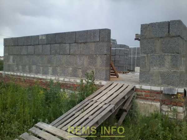 С материалом определился, нашел в интернете, заказал, подождал пока изготовят, привез, заказал кран, разгрузил, установил поддоны с блоками на фундамент и начал не спеша работать. Постройка из арболита ничуть не отличается от возвеления стен из пеноблоков, то есть, блок, он и есть блок)