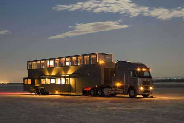 30-тонный двухэтажный дом на колесах площадью 102 квадратных метра дарит максимум комфорта и роскоши. Внутри 2 ванные комнаты и домашний кинотеатр. Цена составляет примерно 2,2 миллиона долларов.