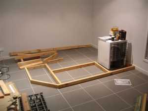 ![]() | Шаг 3. Создание настила. Прибиваем листы фанеры к основанию конструкции. Они уплотнят ее. На этом же этапе стоит продумать подводку коммуникаций (если они потребуются). |