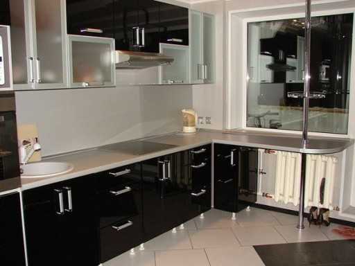 Нередко при перепланировке небольшую кухню соединяют с прилегающим к ней балконом, существенно увеличивая площадь комнаты. Идеальное дизайнерское решение для воссоединения кухни с балконом – барная стойка на границе кухни и балкона, а точнее на месте подоконника. В этом случае под барную стойку можно приспособить уже существующую перегородку-подоконник, поэтому не спешите ее сносить!