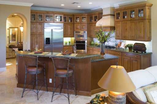 Классическая кухня с барной стойкой фото