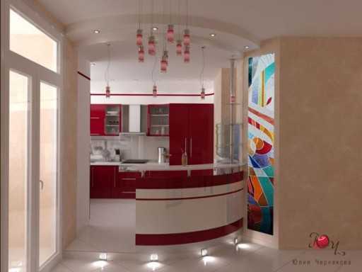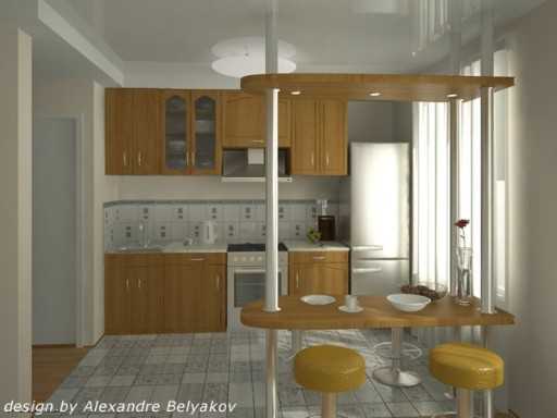Барная стойка на кухне совмещенной с балконом