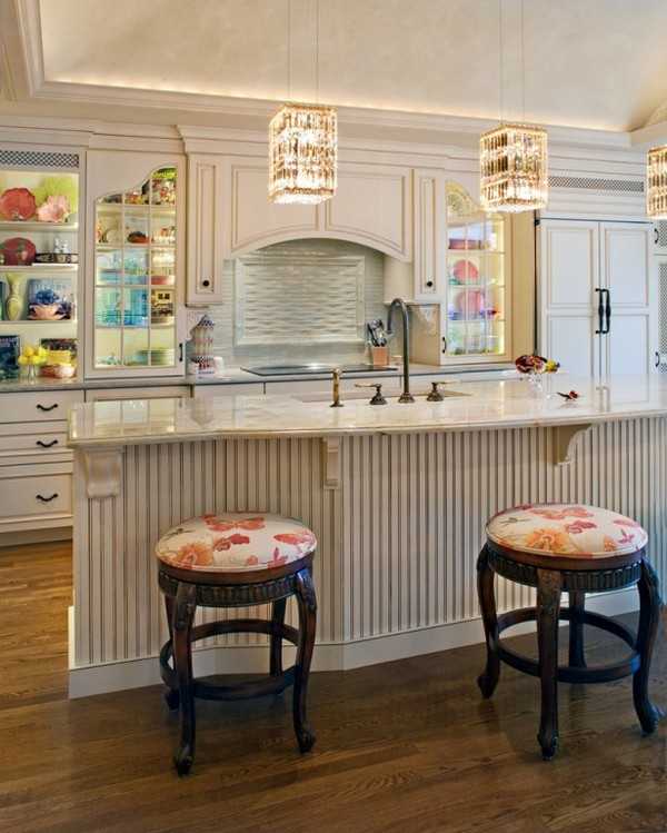 Если душа просит именно автентики, а пространство кухни не ограничивает полета фантазии, можно смело делать ставку на классику! Она всегда смотрится солидно и эффектно, но требует соответствующего антуража и аксессуаров – не зря ведь она именуется барной! Если уж возжелали барного флера, будьте готовы раскошелиться на оригинальную оснастку и «огранку»: хромированные рейлинги, подвесы для стаканов, бокалов и фужеров, шейкер для смешивания коктейлей, дизайнерские подставки для винных бутылок. Хотя барная стойка априори ассоциируется с распитием алкогольных напитков, нелишним будет оснастить ее и фито-баром с соковыжималкой, кислородным коктейлером, френч-прессом, чаеваркой и кофемашиной.