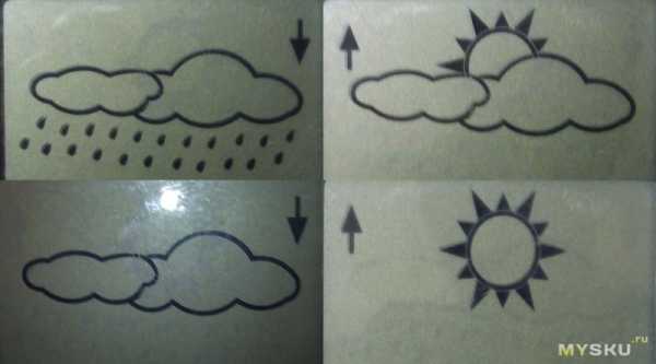 На основании произведенных измерений, а также данных об изменении погодных условий за определенный промежуток времени, устройство составляет краткосрочный прогноз погоды, который выводится на дисплей, в виде погодных символов.