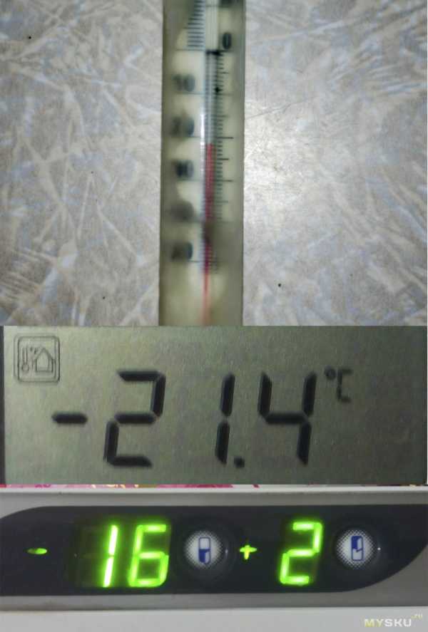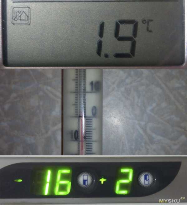 Видим, что температура на обоих градусниках почти одинаковая, что радует, а вот с установленной температурой холодильника не совпадает, да еще как. Вывод: менять холодильник))