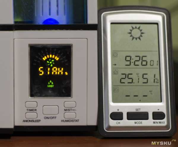 Сравниваем замеры влажности увлажнителя и метеостанции.