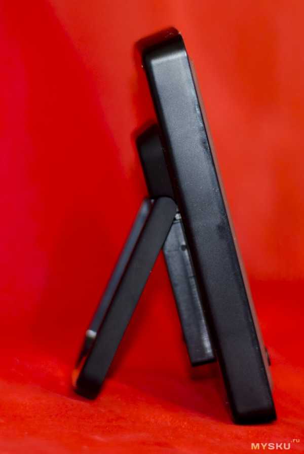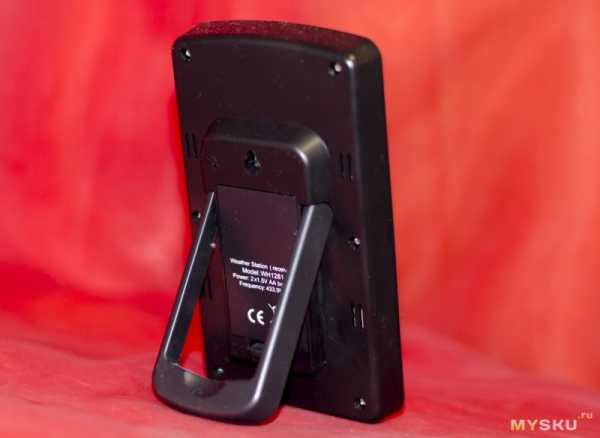 Метеостанцию можно повесить на стену, для этого есть специальное отверстие, а можно установить, например на стол, сзади есть откидная подставка.