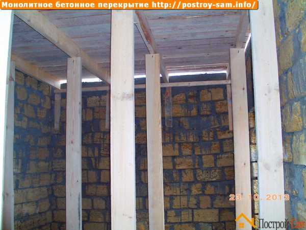 3)Каркас сваривается из металла, укладывается арматурная сетка на перекрытие. Само перекрытие опирается на несущие стены и внутренние перегородки. Затем заливается бетон, обязательно за один раз. Для хорошей усадки бетона нужно постукивать по опалубке.
