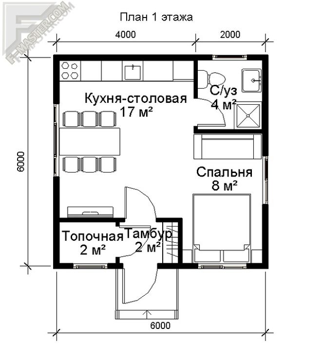 Планировка каркасного дома 6х6