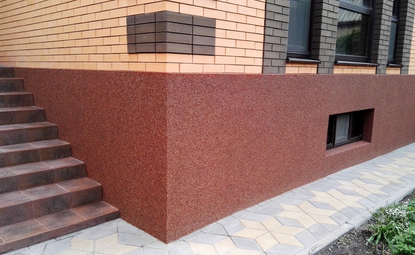 В разрезе цоколя мы говорим именно о декоративных составах, подходящих для использования на улице: специальные полимерные добавки улучшают эксплуатационные свойства материала. В отличие от обычной смеси, минеральная декоративная штукатурка влагостойкая, устойчива к перепадам температур, не растрескается даже при сильной нагрузке.
