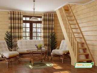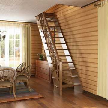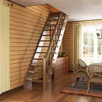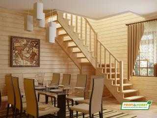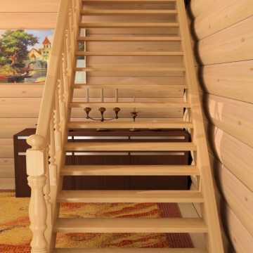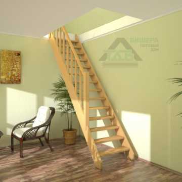 Лестница на 2 этаж на даче эконом класса, недорогие (дешевые) деревянные лестницы эконом класса в Москве