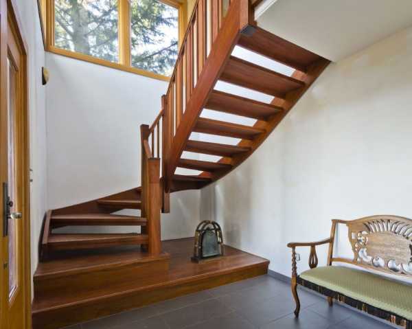 Цена на деревянную лестницу, ведущую на второй этаж, также может зависеть от типа несущей основы и варианта ее крепления. Их нужно выбирать с учетом места расположения, предполагаемой проходимости и нагрузок, требований к безопасности и удобству эксплуатации. Ни для кого не секрет, что прямая одномаршевая конструкция будет дешевле, чем лестница с забежными ступенями или поворотной площадкой.