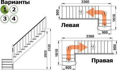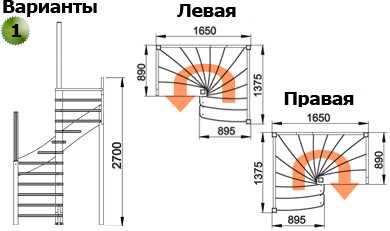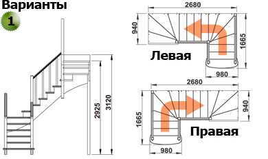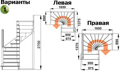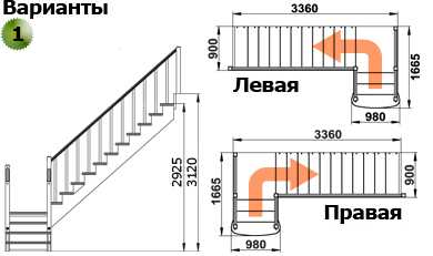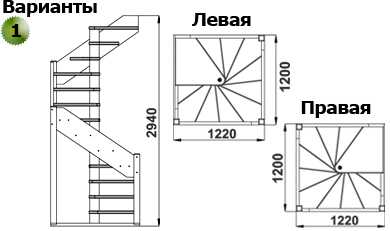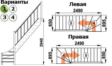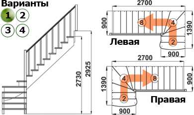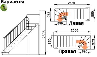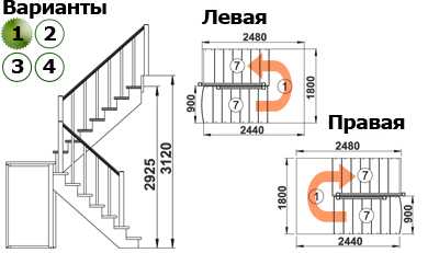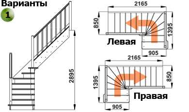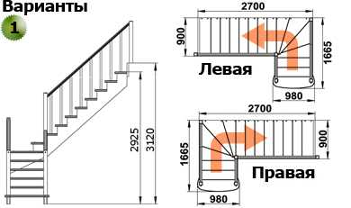 - Тип конструкции: с поворотом (на 180, 90 градусов), прямая, с забежными ступенями или площадкой, винтовая и т.д.