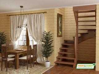 При изящном внешнем виде модель отличается гарантированной прочностью. Лестница обходится в приемлемую сумму и выглядит эффектно благодаря массиву дерева и плавным линиям поворота.