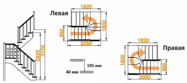 - лестница эконом класса Г-образного типа с поворотом на 90 градусов оснащается или площадкой, или забежными ступенями;