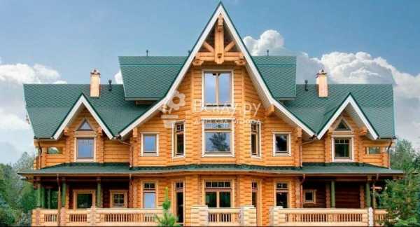 Дизайн коттеджей из дерева в современном стилеВысокие островерхие крыши излюбленный прием для получения эффекта терема.