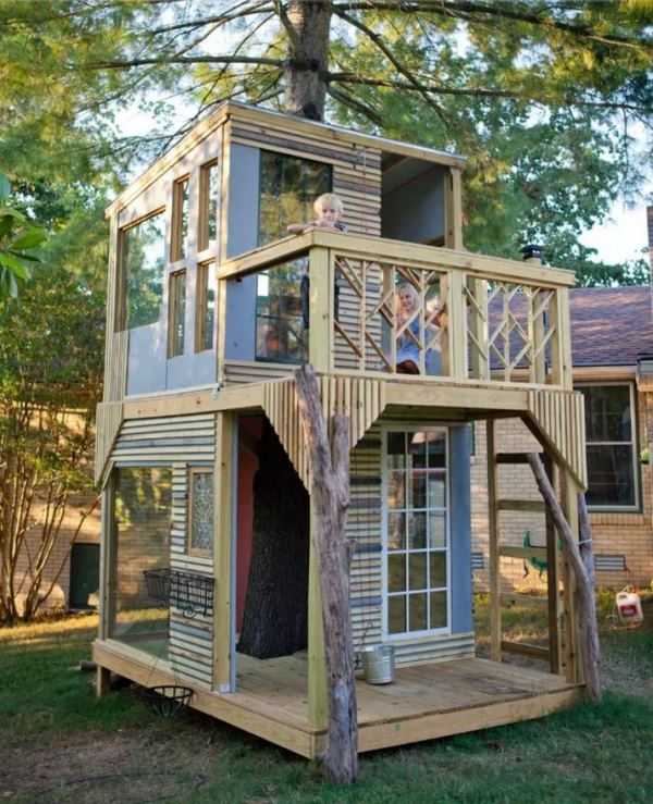 - Игровой домик для детей. Игровой домик можно использовать не только, как площадку для игр детей, но и в летнее время устроить в нем закрытую террасу, где можно принимать гостей. Как только дети подрастут, они могут организовывать дискотеки и вечеринки в этих домиках. В среднем площадь таких домиков составляет 10 м2.