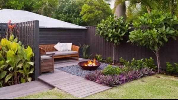 - посадить возле стен домовладения вьющиеся растения и благодаря им создать имитацию беседки или миниатюрного сада. А добавление в дизайн дворика мини-водопада или небольшого пруда позволит получить комфортабельную зону для отдыха.