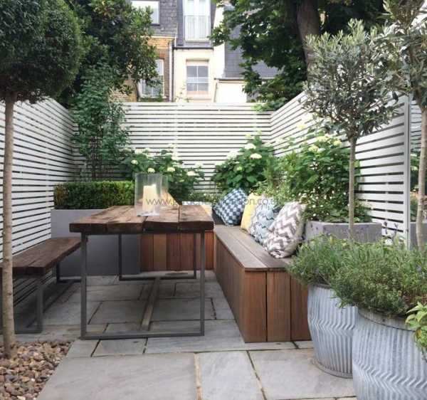 При благоустройстве миниатюрных дачных дворов можно ограничиться небольшими лавочками (особенно эффектно смотрятся кованые скамейки), столом и стульями, окруженными декоративными растениями.