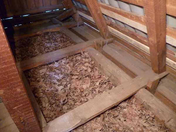 В качестве утеплителя использовали сено, луковую чешую, а также шелуху от семечек, которую рассыпали по всей площади чердака.