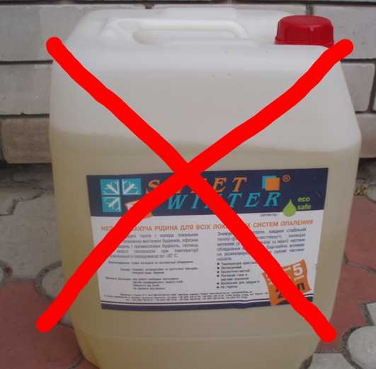 Не используйте в качестве незамерзающей жидкости такие растворы, как этиловый спирт, тосол или трансформаторное масло. Это связано с тем, что теплоноситель не должен гореть или содержать в своём составе вредных для человека веществ.