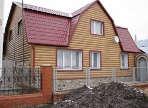 Вот еще фото фасада, отделанного под деревянную дранку.