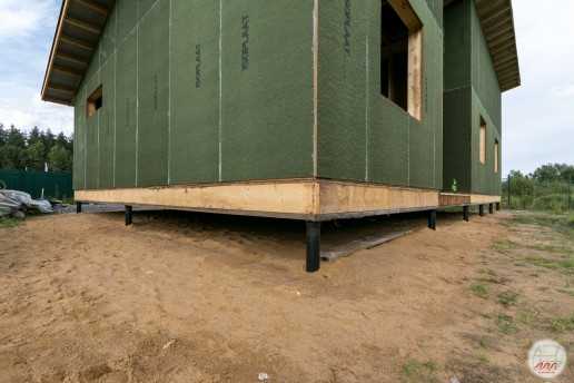 В этот этап стройки вошла коробка дома, крыша, утепление нижнего перекрытия. Свайно-винтовой фундамент у заказчицы уже был готов к приезду моей бригады. Если заказчик хочет дом именно на сваях, то мы согласовываем проект и я рисую свайное поле, дальше уже за дело берется профильная организация, которая крутит сваи.