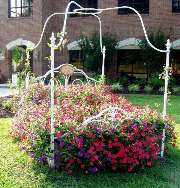 Отличным способом не только сэкономить, но попробовать себя в творческих начинаниях дизайнера, будет использование ненужных вещей в декоративных целях. Например, непригодные к применению огородные принадлежности, старые велосипеды, автомобильные покрышки можно покрасить и разместить среди растительных композиций как стильный элемент.