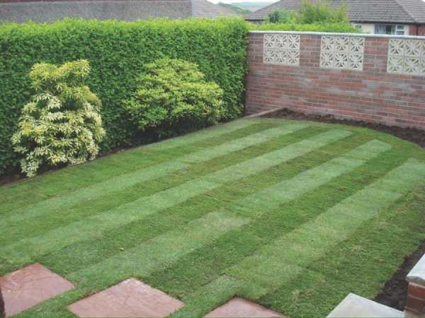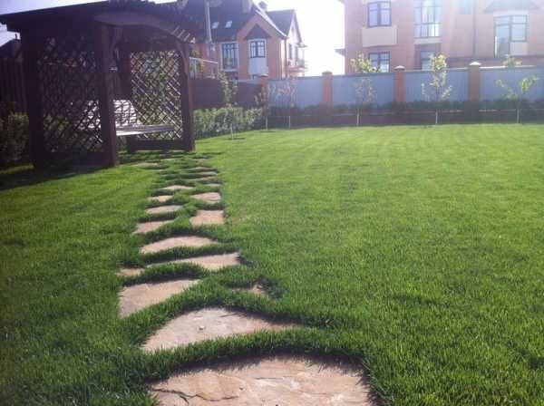 Дизайн двора частного дома — Зеленое поле газона