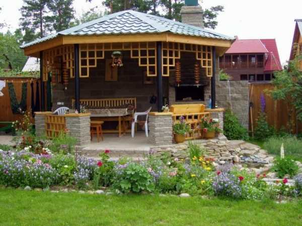 Беседки и навесы в дизайне двора на фото