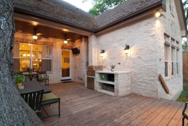 Если позволяет пространство, удачно впишется полноценная летняя кухня. Идеальным будет сочетание с крытой террасой, на случай дождя.