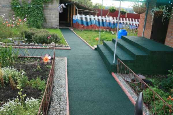 Так, современные материалы позволяют встраивать светильники прямо в дорожку, при дневном свете они будут мало отличаться от остальных элементов. Помимо цены к минусам стоит отнести относительную сложность укладки — без соблюдения технологических норм, качественной подложки и дренажа, такая тропа быстро потеряет презентабельный вид.