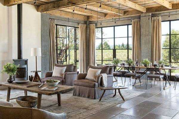 Загородный стиль открытыми балками перекрытий выглядит очень оригинально