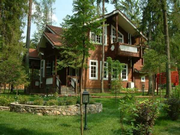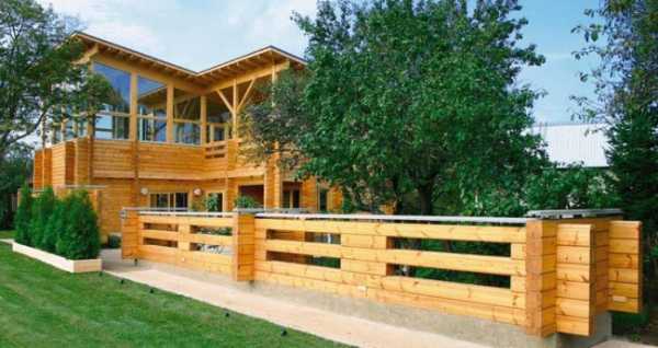 Пример функционального декорирования участка деревянным брусом, из которого выстроен дом