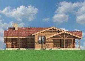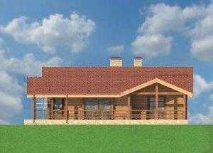 На рис. 10,11,12, 13 представлен проект одноэтажного загородного дома из профилированного бруса, рассчитанный на постоянное проживание с террасой и котельной для семьи из пяти человек. Общая площадь постройки — 228,2 м2, общая площадь дома – 140 м2. Для постройки используется профилированный брус сечением 200х150 мм, такой дом без дополнительного утепления выдержит морозы до -26С. Фундамент – ленточный или из ФСБ-блоков. Такой дом подойдет для семьи с маленькими детьми или с пожилыми людьми, которым будет тяжело подниматься на второй этаж. В то же время дом имеет все необходимые помещения, хотя добиться этого удалось за счет достаточно большой занимаемой площади.