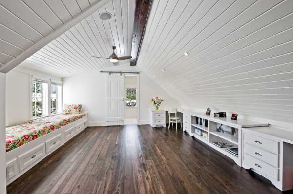 В-третьих, в оформлении мансарды нужно использовать только экологически чистые материалы. Крыша довольно сильно нагревается, а при высоких температурах материалы начинают выделять вредные вещества. Использование их недопустимо, особенно если речь идет о дизайне детской.