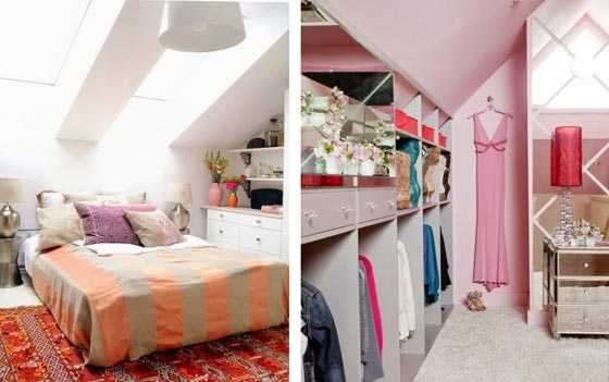 - Гардеробная. Что делать, если у вас много вещей, но хранить их негде? Сделайте из мансарды гардеробную комнату. Тогда проблема будет решена.