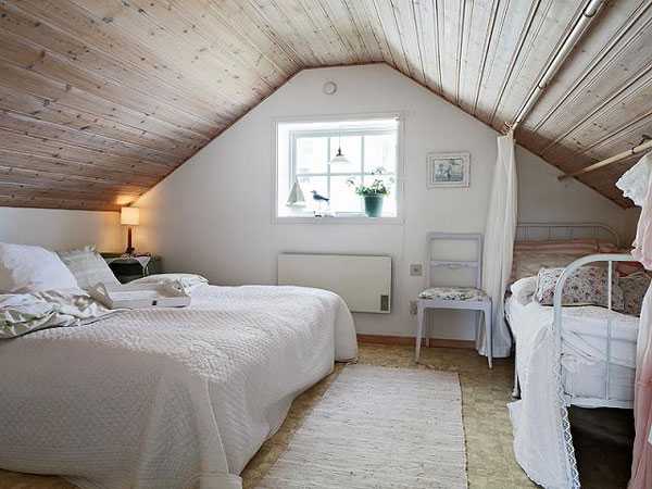 Чердачная комната может использоваться круглый год, при этом необходимо позаботиться об установке системы отопления. Собственники загородного жилья в суровых климатических зонах предпочитают оставлять этаж неотапливаемым.