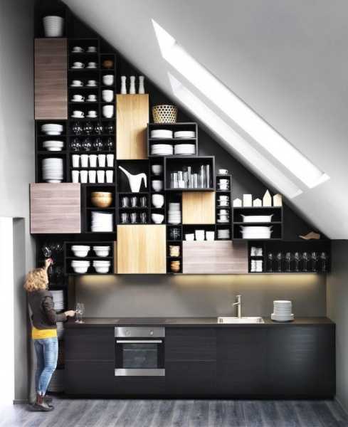 Миниатюрные мансарды и помещения с небольшими скатами крыши используют для создания встроенных систем хранения одежды, спортивного инвентаря, ёлочных украшений. Отделка помещения предполагает установку светодиодных ламп, модульных ящиков и полок-трансформеров.