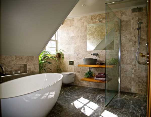 Утеплённые дома для постоянного проживания имеют просторные ванные комнаты, сауны, гидромассажные установки. Помещение на последнем этаже подходит для гостевой ванны, создания небольшой зоны для релаксации.