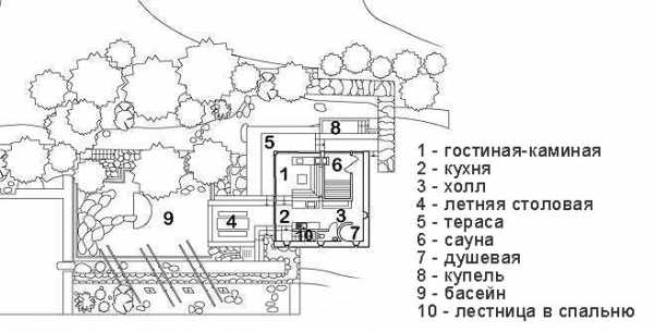 Если ваш дачный участок расположен в лесу или просто на участке есть склон, то этот проект отлично подойдет, если не для дачного дома, то для летней кухни с верандой несомненно.
