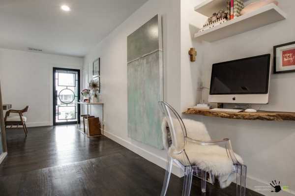 Встроенный рабочий стол послужит украшением интерьера маленького дома.