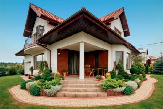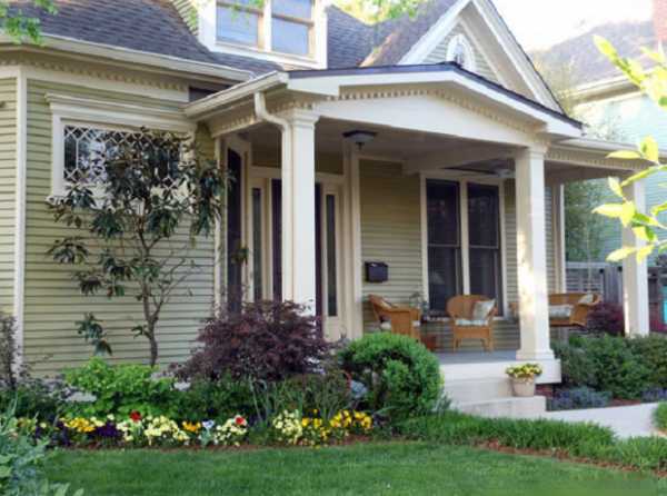 Крыльцо считается визитной карточкой любого дома, поскольку именно оно и формирует впечатление о хозяине. Что касается конструкции, крыльцо состоит из перил, ступенек и навеса. Часто при его оформлении дизайнеры стараются применять колонны, скульптуры, цветы в горшках, в чем можно убедиться, глядя на фото. Общий дизайн обязан соответствовать стилистике дома. Согласитесь, возле деревянного строения ступени из камней и балясины будут смотреться достаточно нелепо.