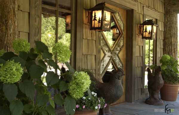 Способов декорирования главного входа множество, ограничить домовладельцев может лишь их собственная фантазия и финансовые возможности. Можно использовать скульптуры для ландшафтного дизайна, установив их симметрично с двух сторон главного входа. Резные деревянные или кованые фонари могут стать отличным украшением крыльца, не говоря уже о функциональной стороне вопроса в темное время суток.